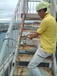鉄骨階段の錆おとしをしています、