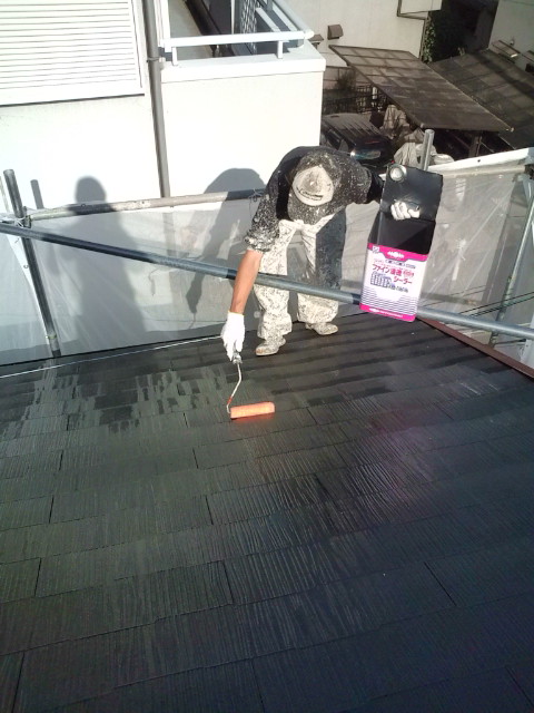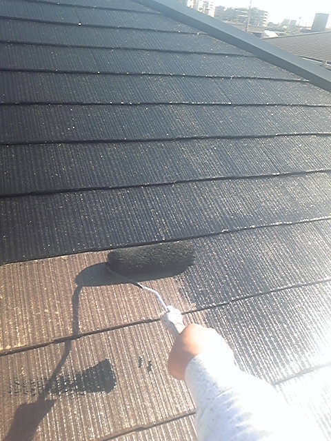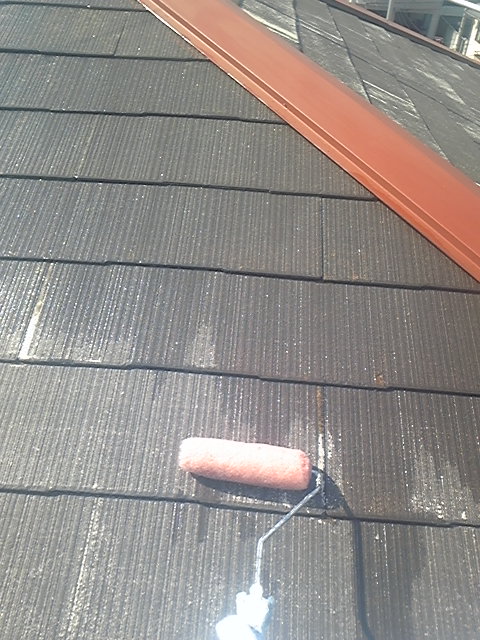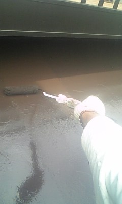 『作業内容』 ・屋根の下塗り2回目 *屋根の下塗りは濡れ色になるまで塗り重ねないといけません。*