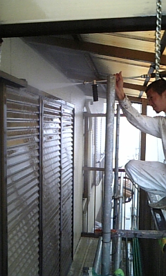 さくらペイントではホースカバーの裏の壁も塗装するために、塗装前に取り外し塗装後また取り付けてからホースカバーも塗装しています。