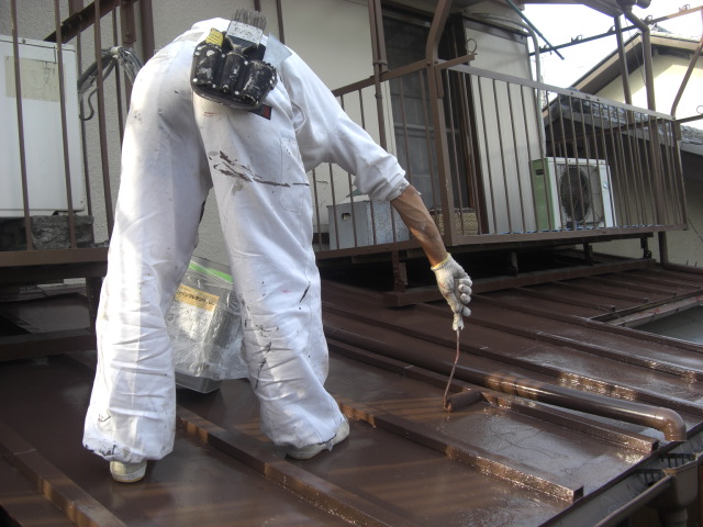 ケレンで錆を落とし、錆止めを塗っています。