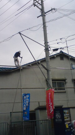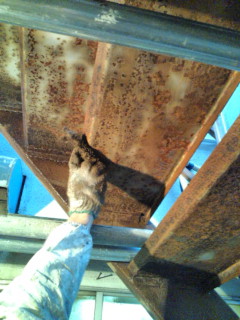 『作業内容』 ・足場組みの続き ・鉄部のケレン