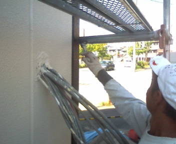 『作業内容』 ・軒裏の塗装 ・壁の中塗り