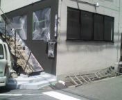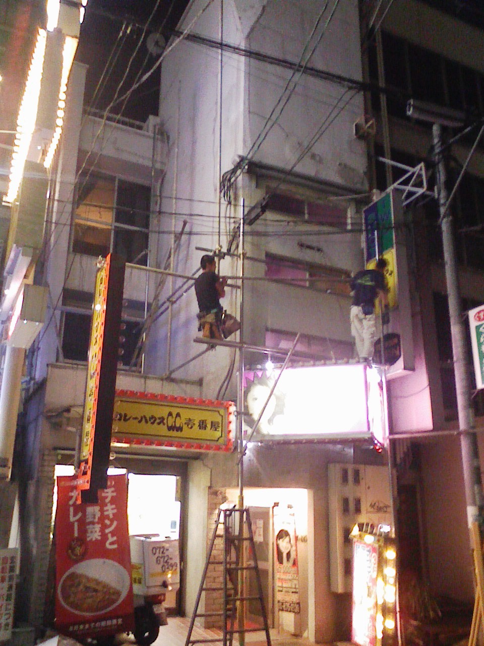 1件は阪急高槻駅前の繁華街なので、夜中の間に足場を組みました!!