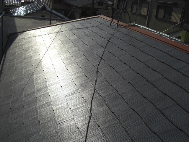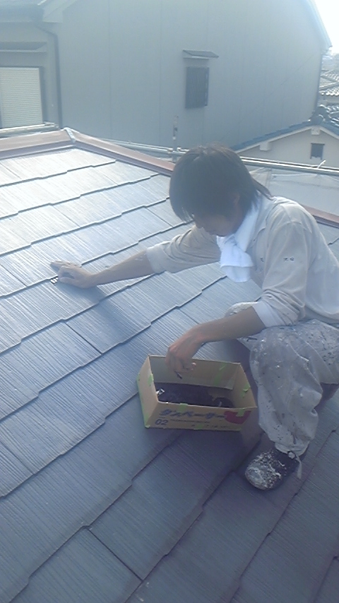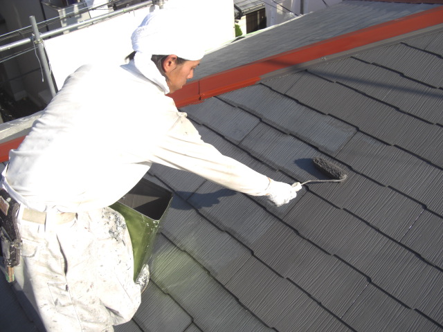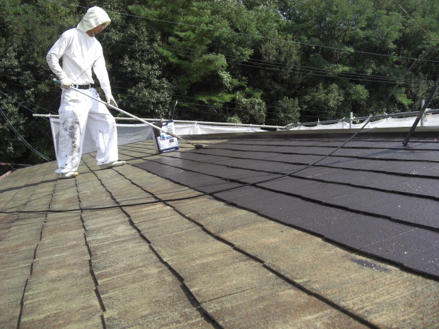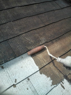 さくらペイントでは洗浄はもちろん下塗りも徹底し、屋根が下塗りを吸い込みきって濡れ色になるまで塗り重ねます。
