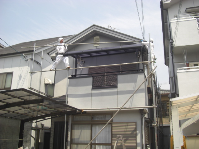 5/11 さくらペイント 今日の作業現場2009/5/11 月曜日外壁塗装みなさんこんにちは、 親方の本田です。 今日は2件の現場で作業しております!! 【 高槻市真上町 下村さま邸 】 『作業内容』 ・養生 【 高槻市大蔵司 塩崎さま邸 】 『作業内容』 ・足場組み 2009/5/11 月曜日外壁塗装Posted by admin