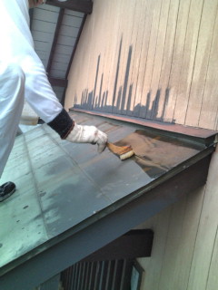 磨見さまのお家のヒサシ(窓の上の屋根)は銅板でできており、いつもならあまり塗装はしませんが旦那さまのご要望で塗装することになりました。
