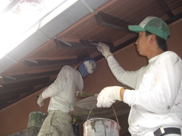 次の作業は月曜日、窓などのビニール養生をはずして壁に付帯している木部を塗っていきます。