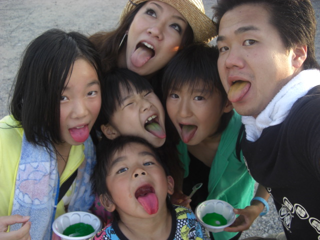 帰りに海の家でかき氷を食べてみんなの舌が色鮮やかに染まったところで記念撮影(笑)