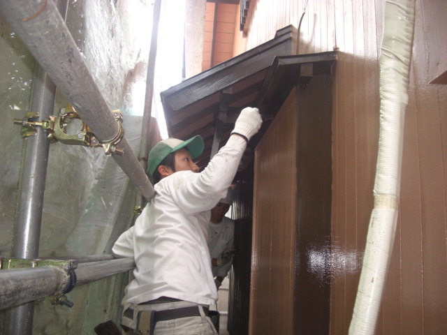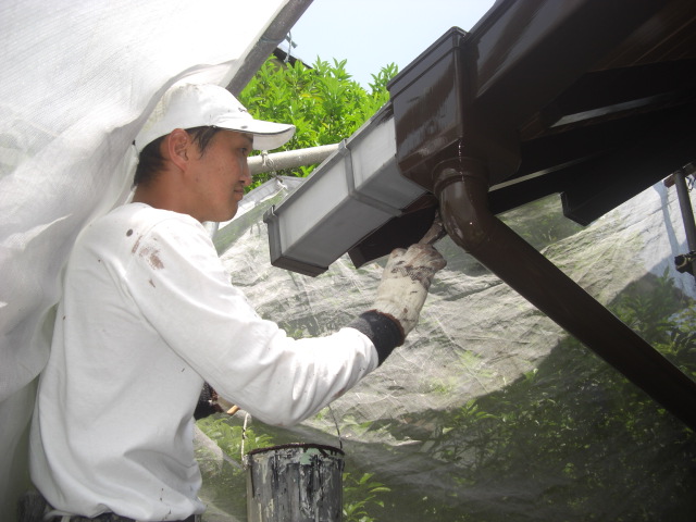 今日も引き続き木部、雨樋の塗装です。