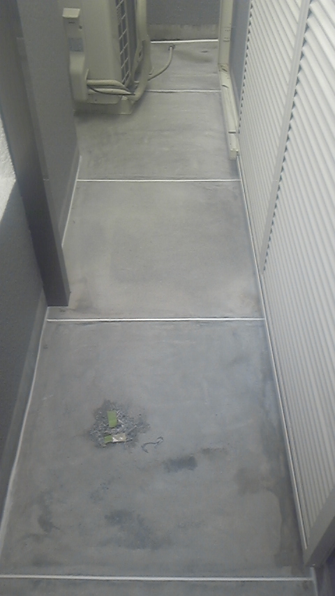 ベランダの下地処理、雨樋の塗装をしております、
